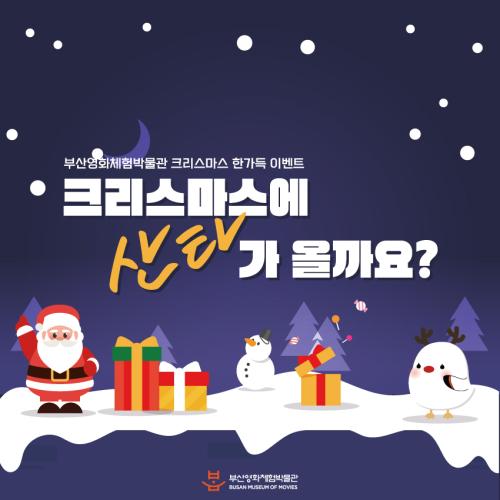 크리스마스에 산타가 올까요? 올 겨울, 부산영화체험박물관에 특별한 크리스마스가 찾아옵니다. 이벤트 1 — 크리스마스 포토존 인증 이벤트 2025.12.02(화) ~ 12.31(수) 박물관 곳곳의 크리스마스 포토존에서 사진을 찍어 인스타그램에 업로드하면, 추첨을 통해 선물을 드려요! 배민상품권 3만원 (15명) *필수 해시태그* #부산영화체험박물관 #산타가올까요 #부산겨울 @busanbom 팔로우 + 태그 시 당첨확률 UP! 당첨자 발표 : 2026.01.06(화) / 개별 DM 이벤트 2 — 단 하루! 산타를 찾아라 2025.12.25(목) 크리스마스 당일, 박물관에 산타가 찾아옵니다! 박물관에 놀러온 산타를 찾아 깜짝 선물을 받아가세요!
